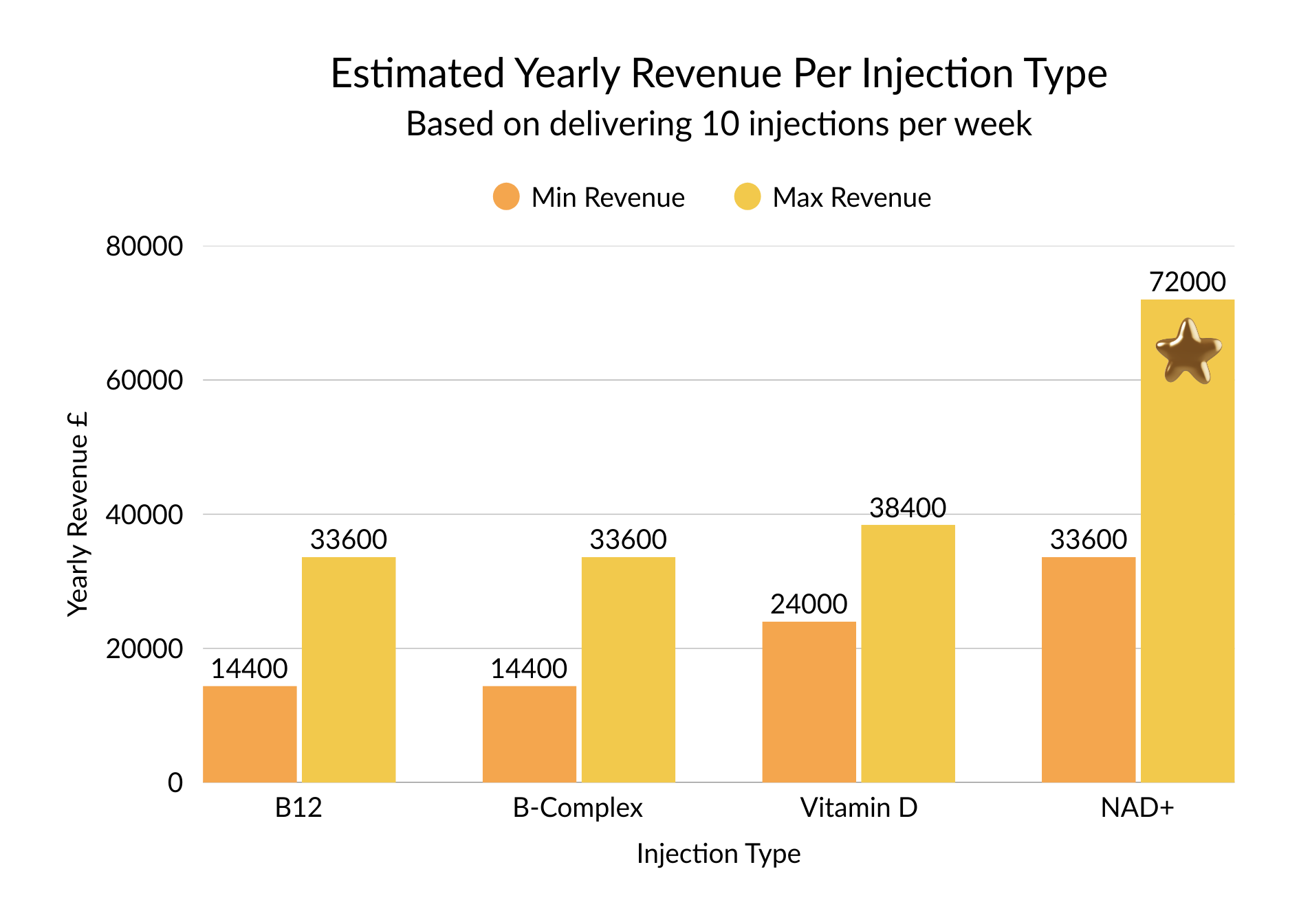 Even at the lower end, offering 10 injections per week can generate: